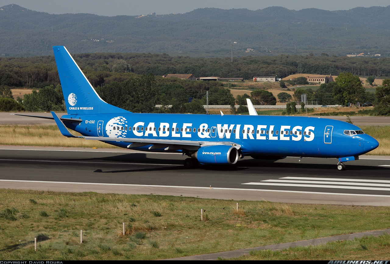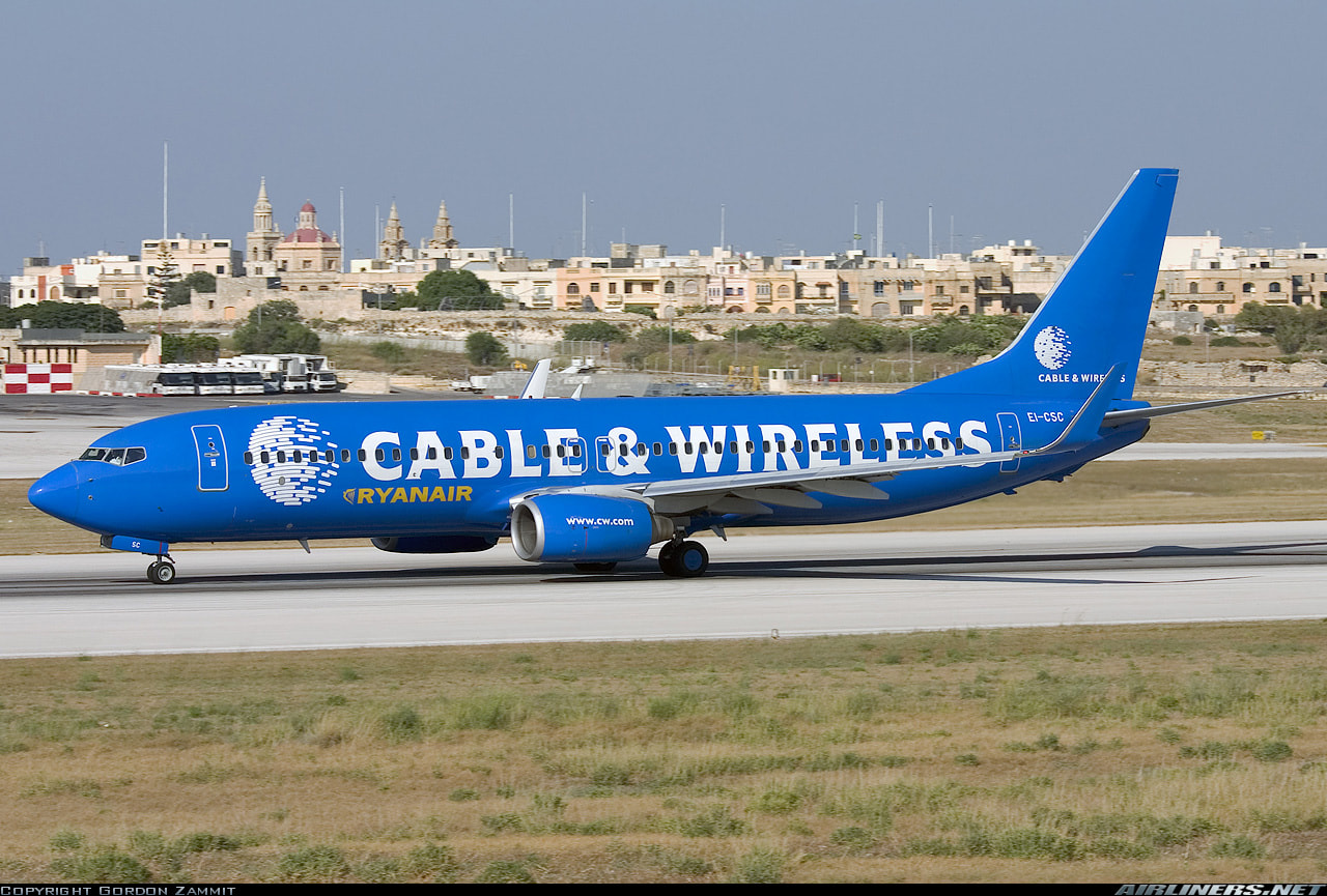 Ryanair had painted a Boeing 737-800, registered EI-CSC, in a special colorway in 2005, which included Cable & Wireless, a British telecommunications company, across the fuselage in an all-blue colorway up until 2007, when Ryanair retired the aircraft from service. The livery was commissioned after Cable & Wireless secured a 5-year European IP network deal with Ryanair in 2005.