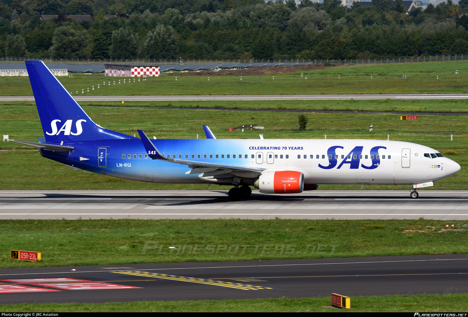 70th anniversary livery for a Scandinavian Airlines Boeing 737-800 (registration RN-LGI)