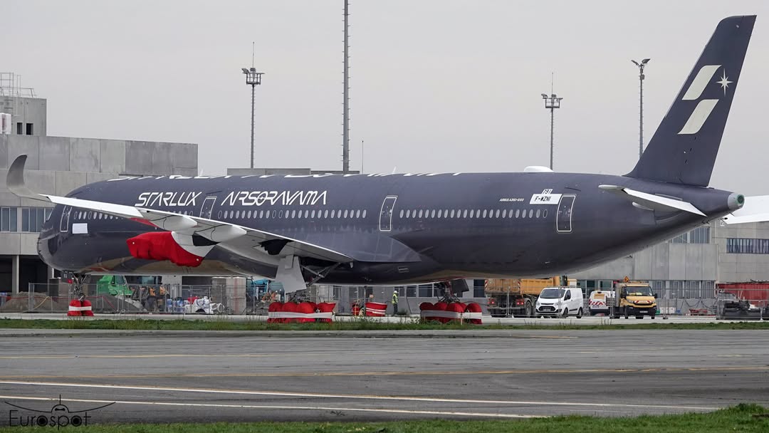 Artistic style: Inspired by the Japanese artist Hajime Sorayama, known for his “futuristic super-realistic” style. Underbody: Soft golden tones appear on the belly of the aircraft, maintaining Starlux’s luxurious identity.