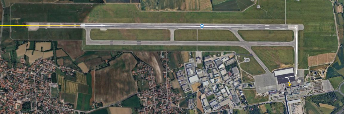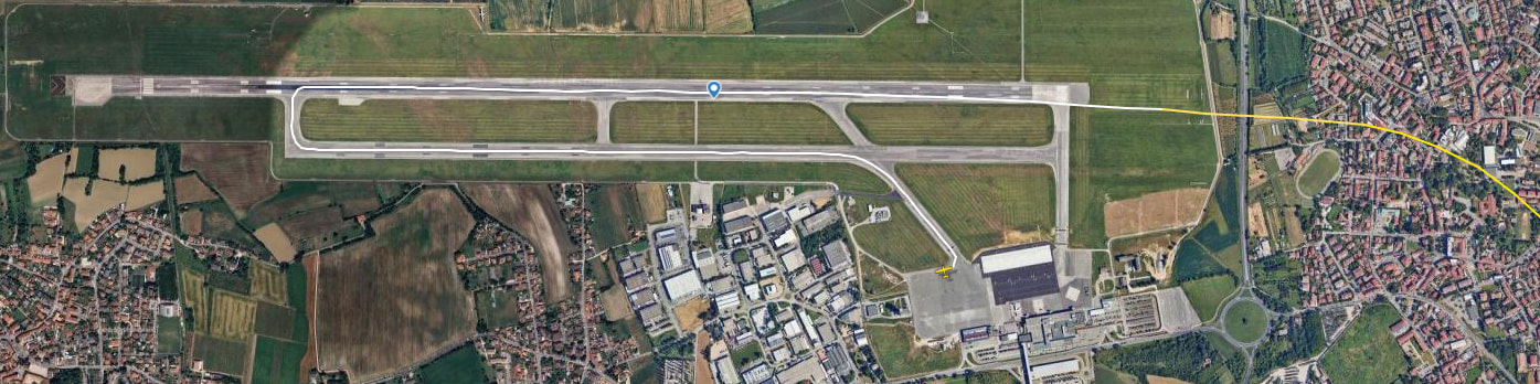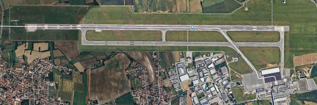The taxiways (or taxiways) are the “avenues” that connect the apron to runway 09-27. In Trieste Airport’s layout, the system is designed to be linear and without complex intersections, minimizing the risk of runway incursions .