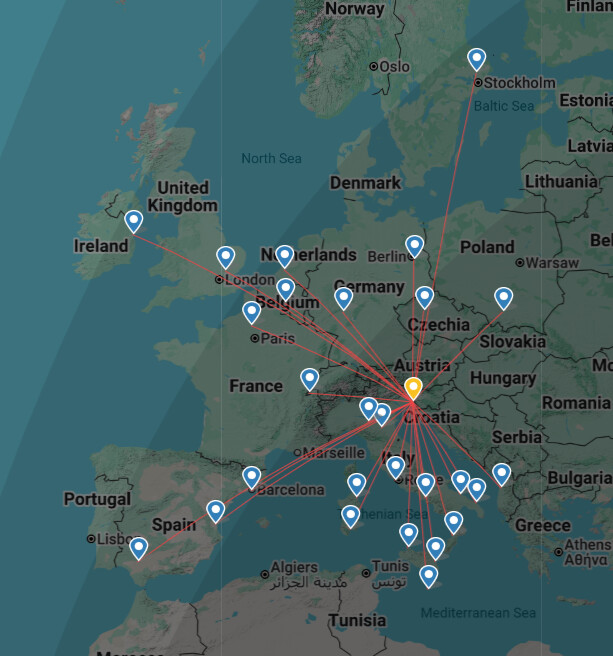 ), 332km - 206mi from “LIN”(Milan Linate