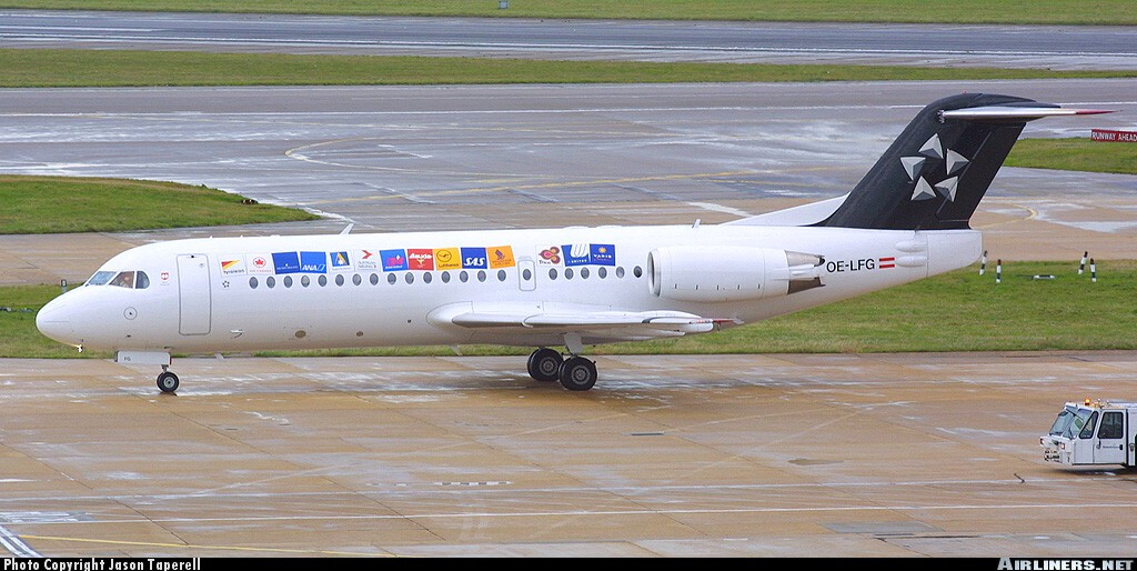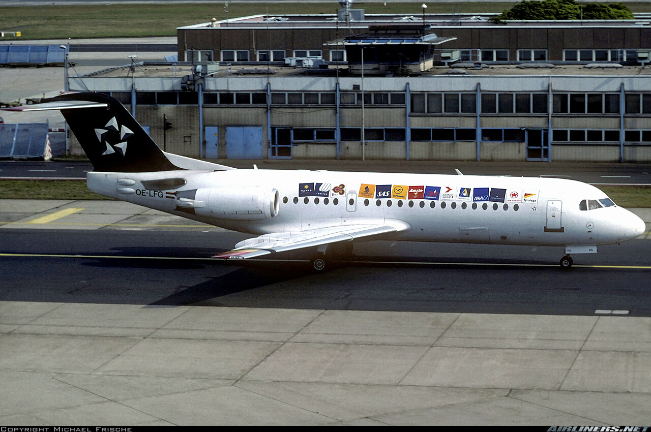 Tyrolean Airways special livery featuring the Star Alliance logo and Star Alliance members’ logos on a Fokker 70.