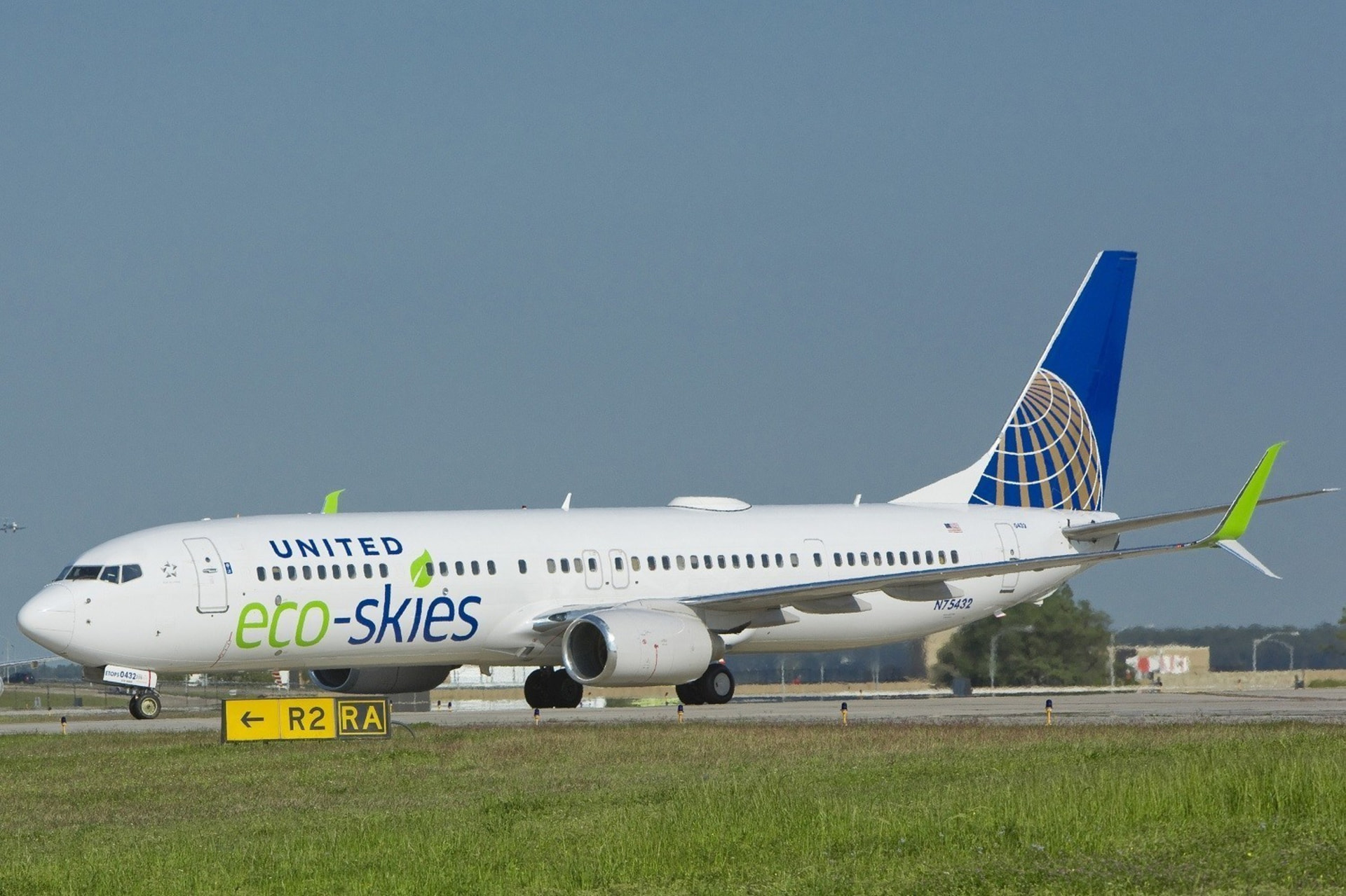 A special livery on a United Airlines Boeing 737-900ER, promoting the use of sustainable aviation fuel. This 737 variant currently isnβt in the game.
