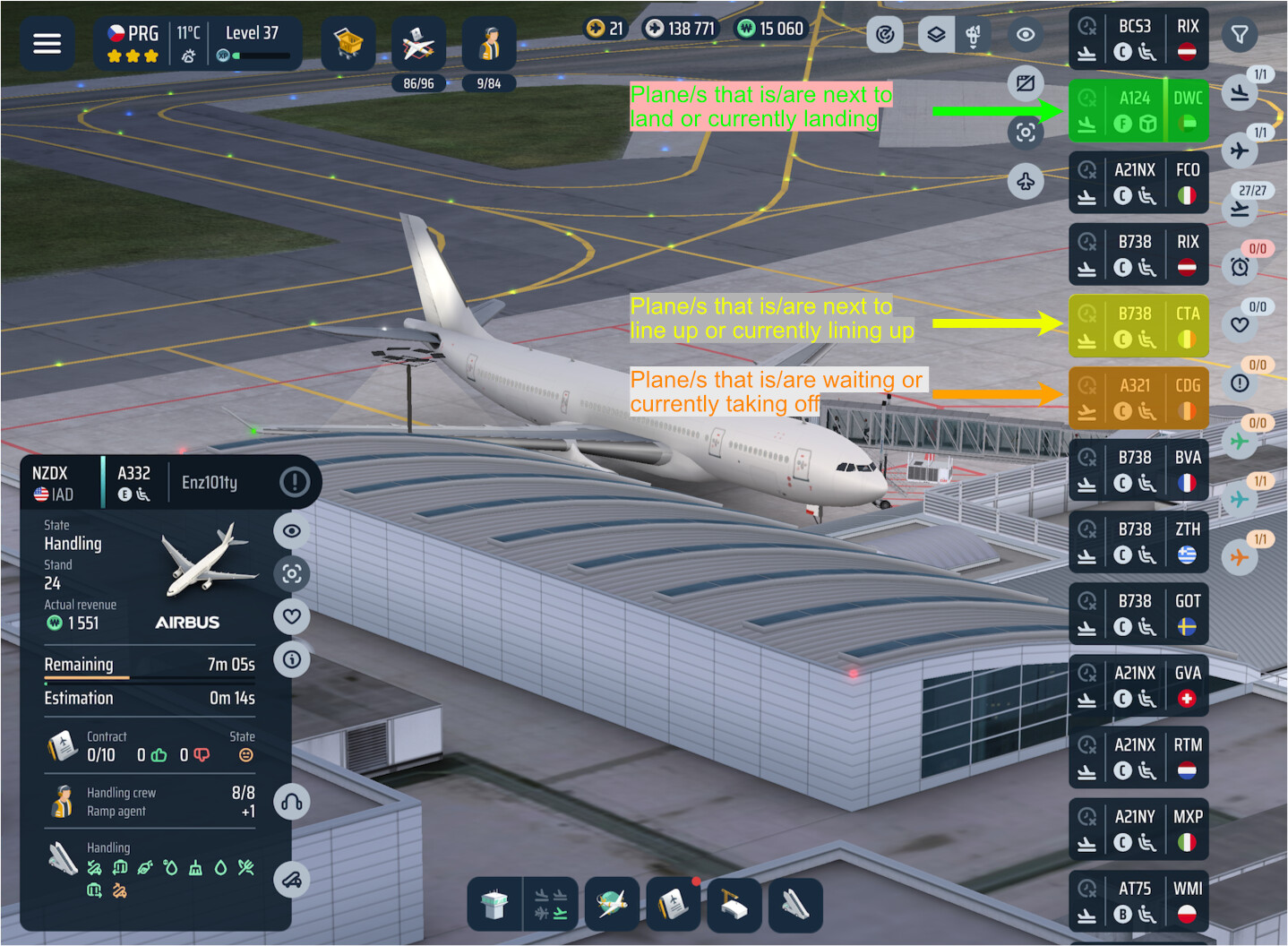 This is just a minor UI change. May I suggest to colorize each card of planes that are next to land, currently landing, next for line up, currently lining up, waiting for take off and currently Taking off with just 3 colors e.g. Orange, Green, Yellow. same with the attached image.