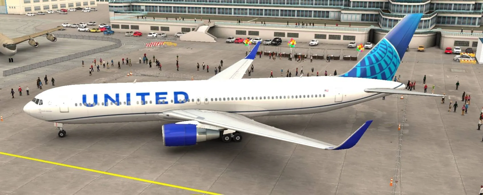 Purchase a United 767-300 in the newest livery, Rising Blue, and land it multiple times at your airport. You’ll see it sometimes has winglets and sometimes doesn’t.