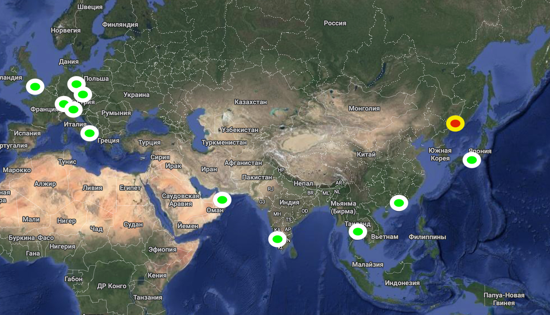 • Rossiya: Blagoveshchensk, Krasnoyarsk, Beijing, Ulan-Ude, Khabarovsk, Harbin, Shanghai, Yuzhno-Sakhalinsk